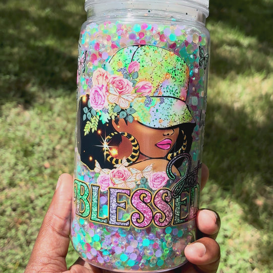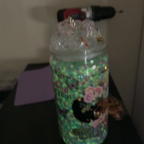 Rhinestone filled snow globe with a custom top. Rhinestones glow in the dark